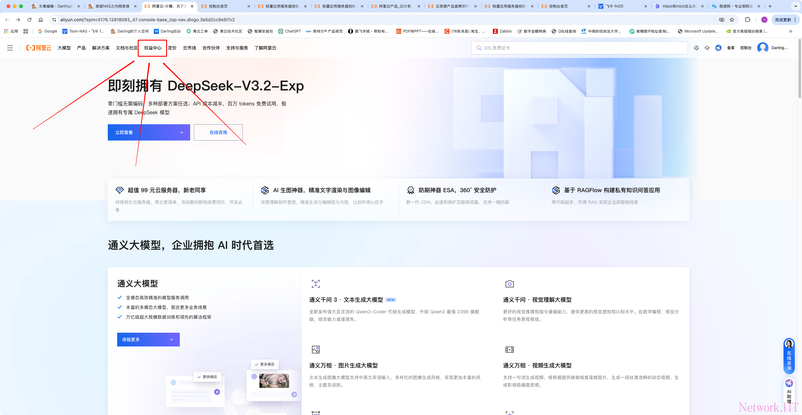登陆阿里云官网,点击权益中心 点击此处快速跳转