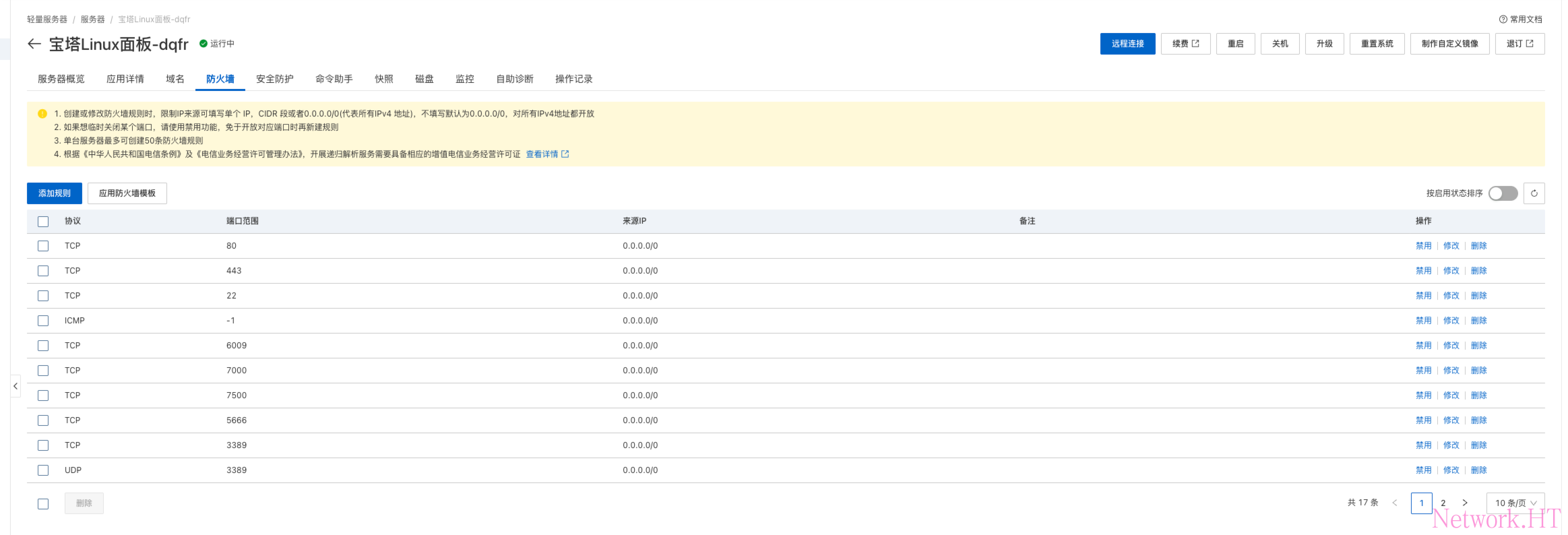 点击防火墙添加放行端口,例如宝塔面板的6009端口,飞牛NAS的5666端口(http)和飞牛NAS的5667端口(https),frps的7000和7500端口。