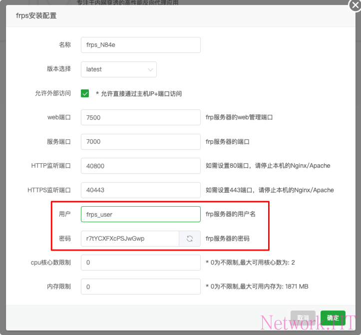 即可,登陆面板后,选择docker,搜索frp,选择frp服务端点击安装并记录账号密码。