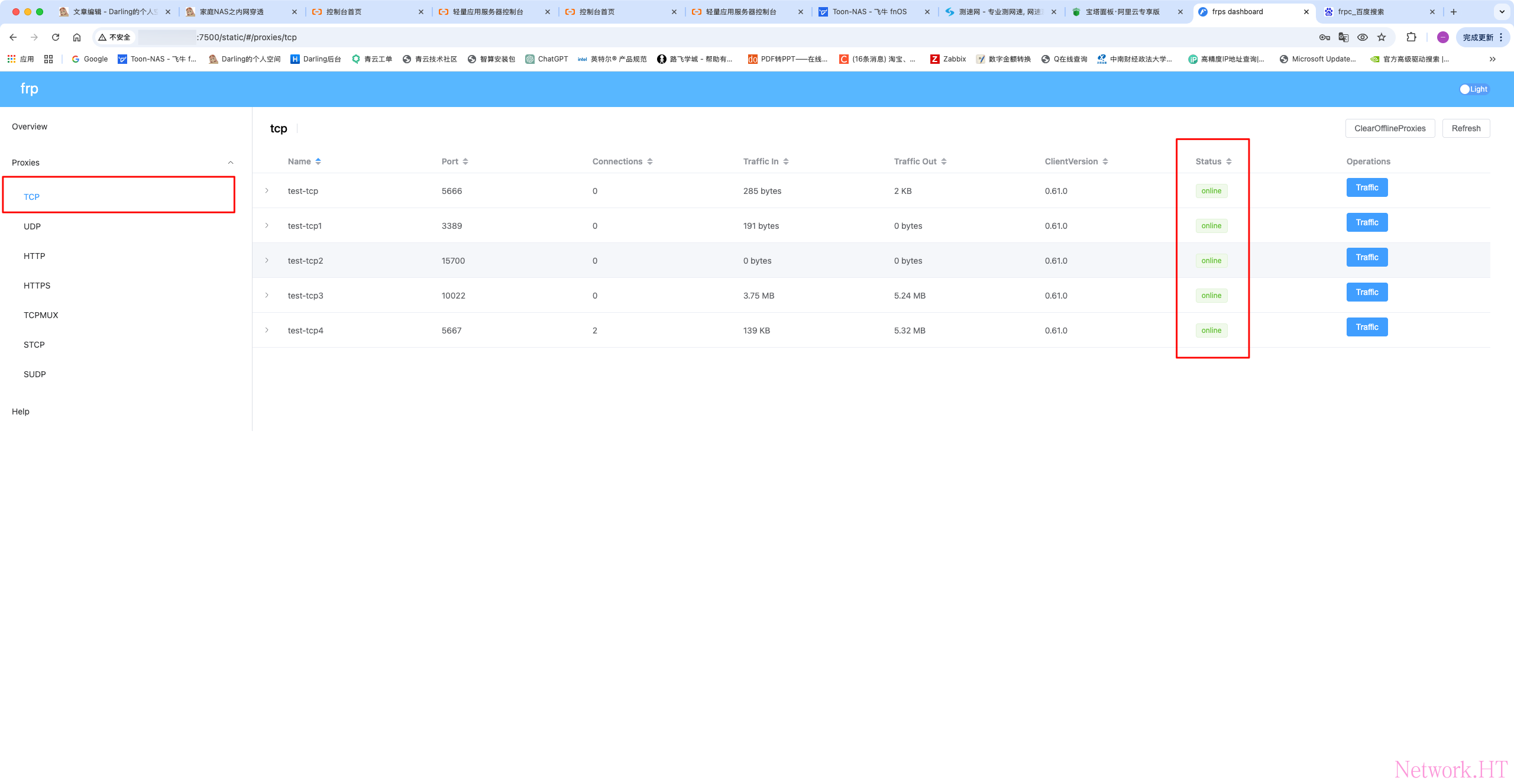 即可,登陆面板后,可以查看连接状态,链接状态为online即为正常,此时通过公网IP+端口即可实现异地访问家庭NAS系统,例如10.10.10.10:5666