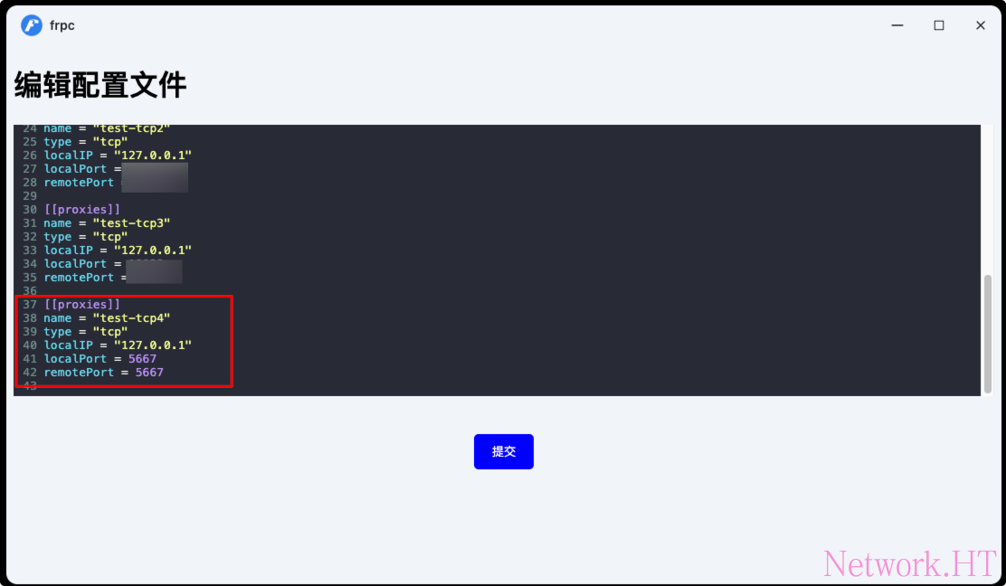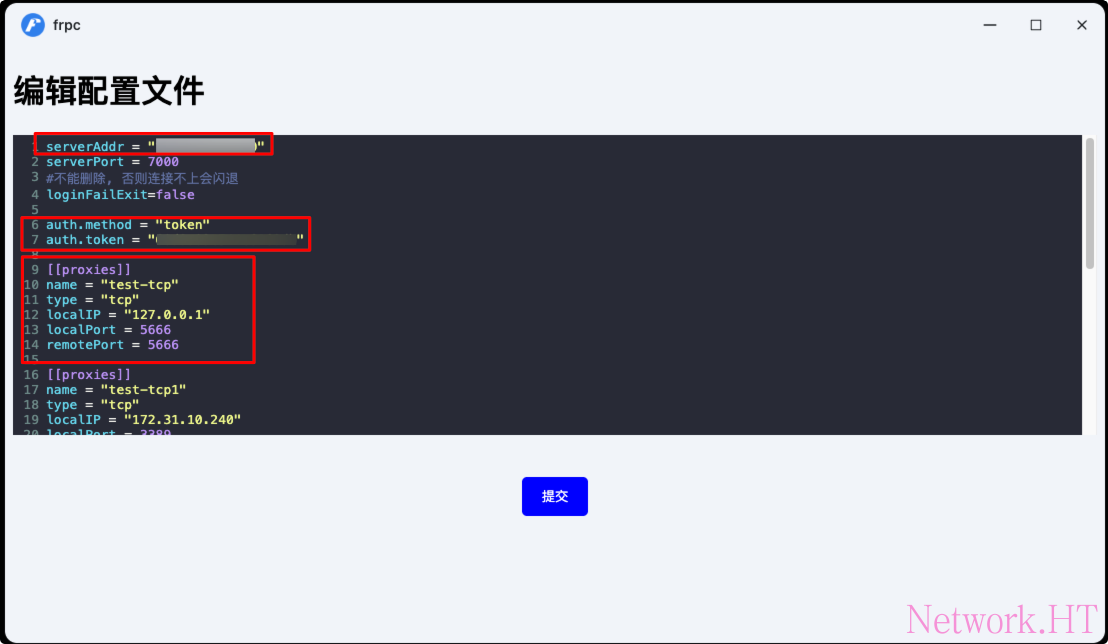 等待安装完毕后,打开frpc客户端,填写对应参数并提交。
