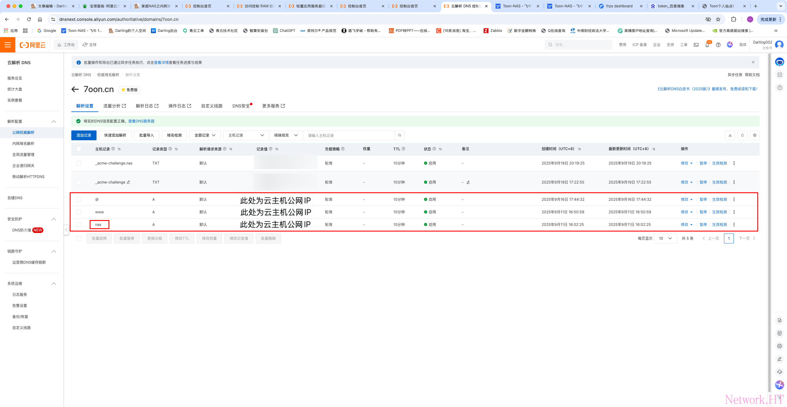 对应nas的二级域名解析(此处可更改,例如nas.xxx.com,xxx.cn是我的根域名,nas.xxx.com是我想用来访问NAS的域名)